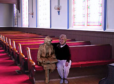 When church members enter the sanctuary now, they can't help but catch the glare of light off of Gert's bronzed pate. Visitors find it inconvenient to climb over her, and children have stubbed their toes on her hardened shins.